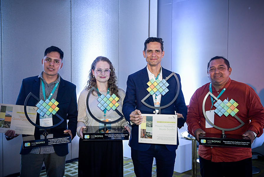 Además, en el marco del lanzamiento de la colección, se realizó la ceremonia de premiación de la primera edición del Premio MapBiomas Colombia: Datos para proteger y transformar los territorios, en donde se reconoció la capacidad de innovación en el uso y análisis de la información de coberturas naturales y uso del suelo en la elaboración de investigaciones y proyectos por parte de la comunidad académica y científica, las entidades del Estado, así como de las autoridades indígenas y comunidades locales.